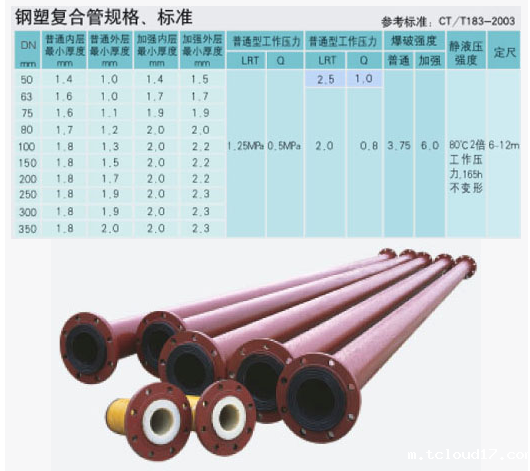 以钢管为中间层,内外层为聚乙(丙)烯塑料,采用热溶胶,通过挤出成型方法复合成一体的复合管材